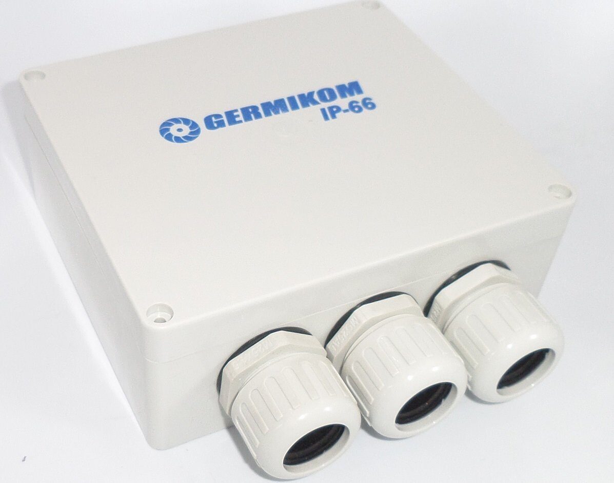 Монтажная коробка GERMIKOM IP66 PRO 20 предназначена для профессионального монтажа, в том числе для установки грозозащиты. Имеет специальные гермовводы, специально предназанченных для закрепления гофрированных труб, предназанченных для прокладки коммуникаций электро сетей. Расчитана для эксплуатации на незащищенных от попадания атмосферных осадков (струй воды), находящихся под открытым небом конструкциях (зданиях, столбах). В ответвительной коробке GERMIKOM IP66 PRO 20 производится разводка (разветвление) проводов электрической высоковольтной и слаботочной сети от 0 до 220В посредством скруток, клемников и пр. допустима установка в полых стенах и стенах из гипсо-картона для открытой и скрытой проводки. Коробка монтажная применяется для защиты от сырости и механических повреждений мест соединения электропровводных кабелей круглого сечения (особенно в гофротрубу).