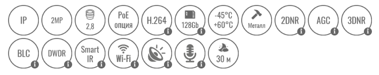 Функции улучшения изображения: BLC, DWDR, 2DNR, 3DNR, AGC, NETIP, Onvif 2.4 (Profile S),