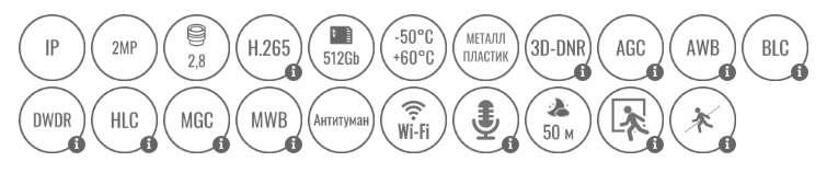 Видеокамера ST-VK2581 PRO WiFi, цветная IP,Разрешение:2,1MP (1920*1080), с ИК подсветкой,детектор движения, обнаружение закрытия объектива, пересечение линии,обнаружение вторжения в зону,4 приватные зоны, Цилиндрическая, Фокусное расстояние: 2,8mm (Гор.107° / Верт. 46,8°/ Диаг. 116,8°), Сенсор: 1/2,8" Progressive scan CMOS, Дальность ИК подсветки: до 50 м, Светочувствительность (мин. освещенность): 0,02 Lux (цвет) / 0 Lux (ч/б c IR), Кодек сжатия: S+265/H.265/H.264, Кодек сжатия аудио: G.711/G.711U/ADPCM (8K~48Kbps), Аудио вход/выход: Встроенный микрофон/-, Дополнительные возможности: WiFi, Наличие слота для SD (типы поддерж.карт): microSD (UHS Class 3 или выше), Максимальный объем SD: до 512Gb, Напряжение питания: 12V±25%, ИК-фильтр: Механический, Функции улучшения изображения: BLC, DWDR, HLC, AGC, MGC, 3D-DNR, AWB, MWB, Антитуман, Smart IR: есть, EasyLive, Кол-во кадров в секунду: PAL 25 к/с, Регулировка кронштейна: 3D-Ось, Рабочая температура: -50…+60°С, Степень защищенности/вандалостойкость: IP67 / -, Материал корпуса: МЕТАЛЛ+ПЛАСТИК