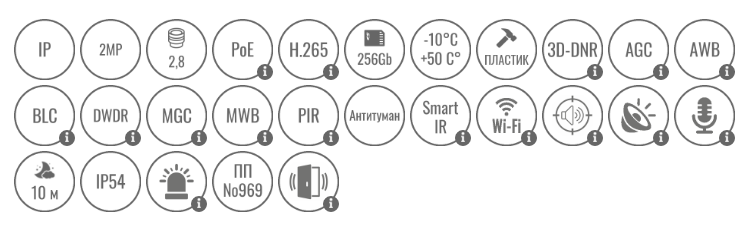 Степень защищен./вандалостойкость: IP54, Материал корпуса: ПЛАСТИК